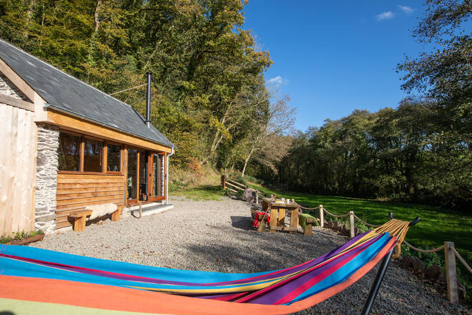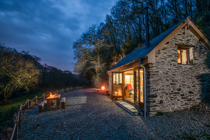 It’s hard to imagine The Linhay – pronounced Lin-hee – as just three crumbling walls, given its splendid restoration. Natural textures abound, with slate in the open-plan kitchen and lovely oak floors, plus a proper loo. Despite this it’s gloriously off-grid: you’re surrounded by acres of farmland and screened by woods, the only sound the babbling brook and the coo of a wood pigeon.
