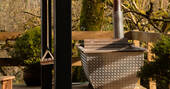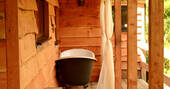 - During the wetter months, the hot tub will be located close to the cabin decking. In the drier summer months it will be moved to a lovely spot by the trees, accessed by your own private path