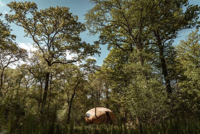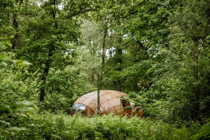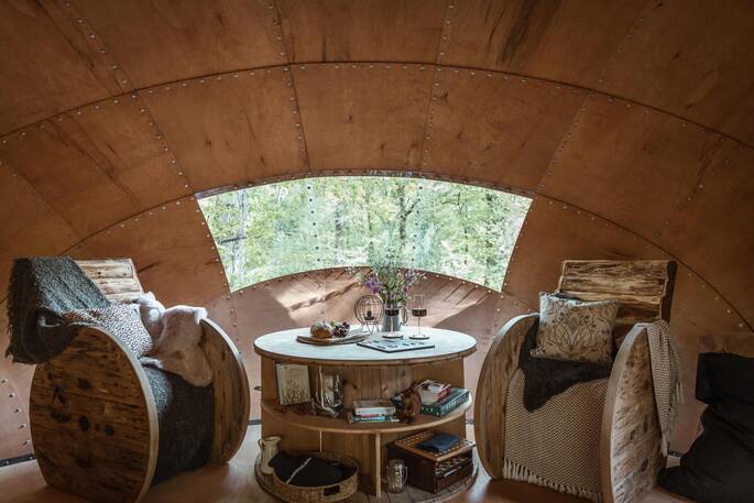 There are small mud covered dens hidden around the woodland where guests can hide with a book.