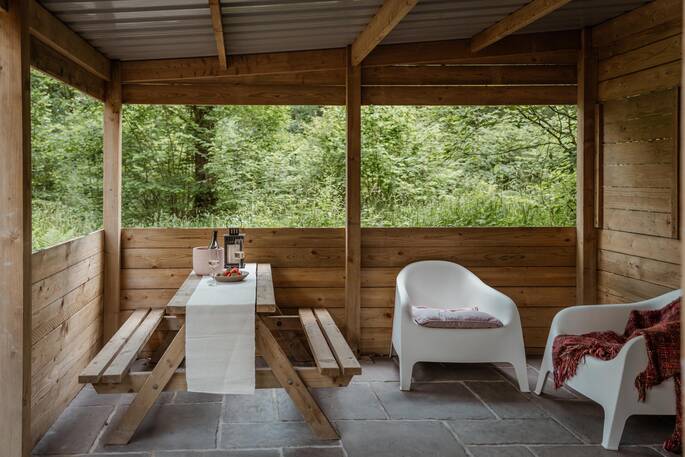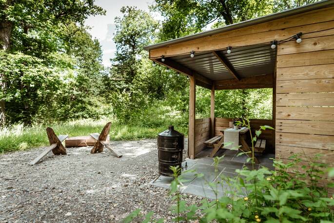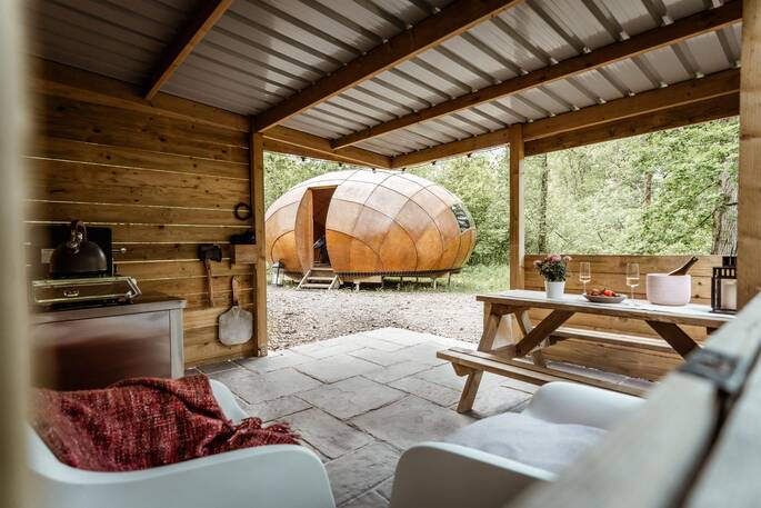 - Private covered outdoor cooking area with BBQ, gas hob and pizza oven right outside your Truffle.