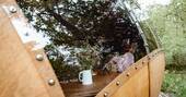 When gorgeous things are springing out of the ground in the woods, it’s no surprise to learn that they’re called Truffles. Heartwood is one of the five gleaming wooden domes that owners Sarah and John have created as a way for people to enjoy their land while having minimal impact on it. They have planted and tended extensively and the woodland now buzzes and bustles with all sorts of wildlife. The Truffles let you slip into woodland life, to sit by the fire, swing in the hammock and enjoy the soothing effects of immersing yourself in nature. Of course, if you like being a bit more active in your downtime, there’s all of Devon to explore, from the wilds of Dartmoor to the beaches of the Hartland peninsula or canoeing down the Dart. There’s also nearby Hatherleigh, where you’ll find a couple of great pubs, a cafe, supermarket and farm shop, so you can head out for dinner or just pick up some great stuff to cook at home.