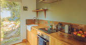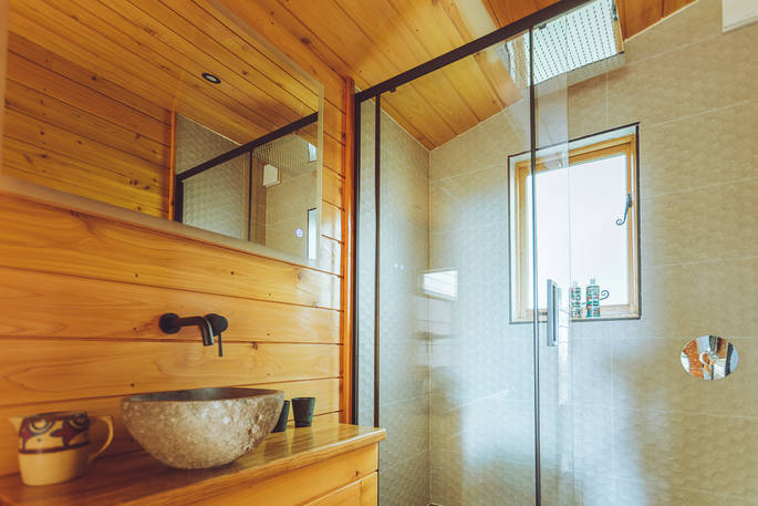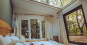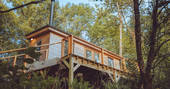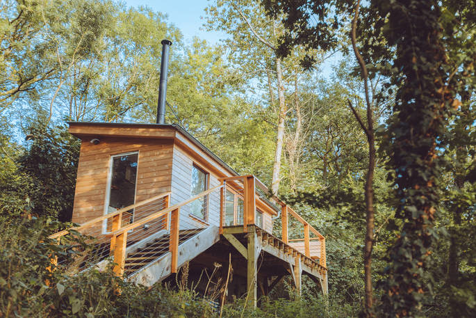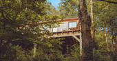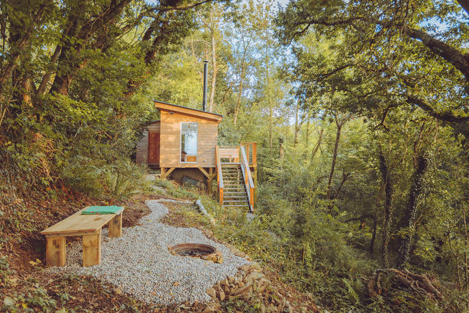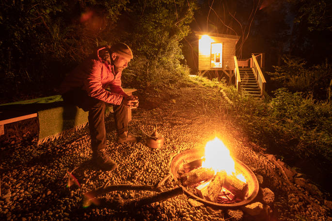 Tiger’s Treehouse was designed to wrap you in absolute comfort and the peace of the Devon woods. Your days will be guided by the shifting light through the trees - leave the blinds open and wake with the dawn, then explore the countryside until it’s time to watch from the balcony as the late sun bursts into the wood. The interior is a simple space where even the artful touches of owner and creator George, like the natural wood curves of the bedhead and worktops, the huge stargazing skylight and mottled copper panels in the kitchen, only enhance the feeling of being surrounded by nature. A few steps along the gravel path brings you to the firepit, where you can finish the day watching sparks spiral up into the starlit night.