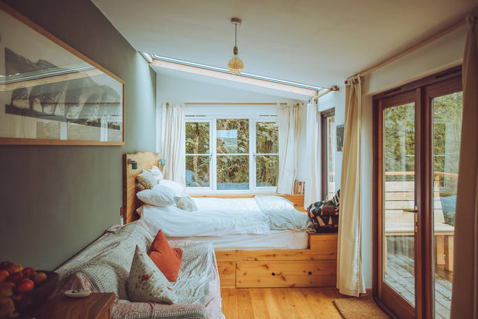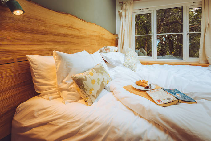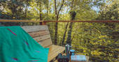 What you might have done during that day is anything from surfing on the nearby Devon beaches or climbing Dartmoor’s rocky tors, to a simple stroll through the valley below the treehouse. A lovely route dives down through mossy trees and blackberry bushes then drops to a riverside stroll in one direction, while climbing to stunning hilltop views in the other. The woods around the treehouse bustle with wildlife as you go and you might spot foxes, badgers and deer, with evidence of otters recently found down at the river and young hedgehogs often seen waddling by. The health of the woodland, even its existence, is no accident. It was planted and nurtured by George’s parents, slowly turning empty fields into a magical place where he and his brother built dens and tree swings. Tiger's Treehouse, named after his father, is an invitation to come and experience the simple, sunlit peace that’s grown from over 40 years of love.