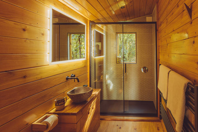 - Bathroom and compost loo located in its own structure round the back of the treehouse