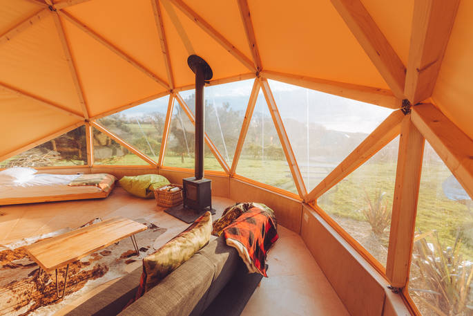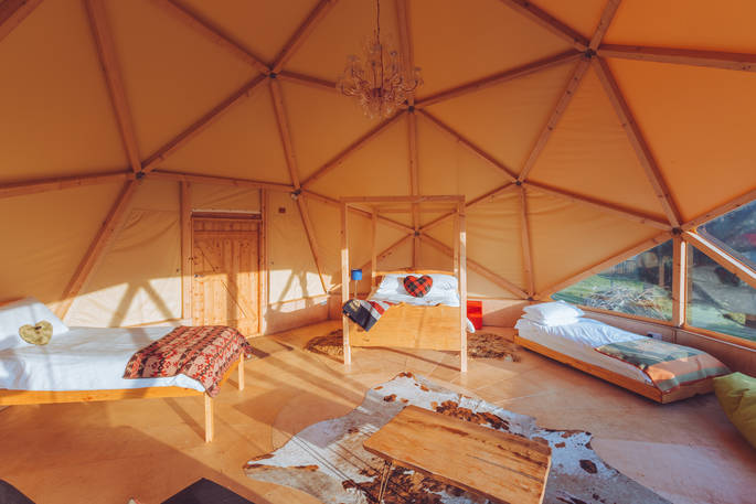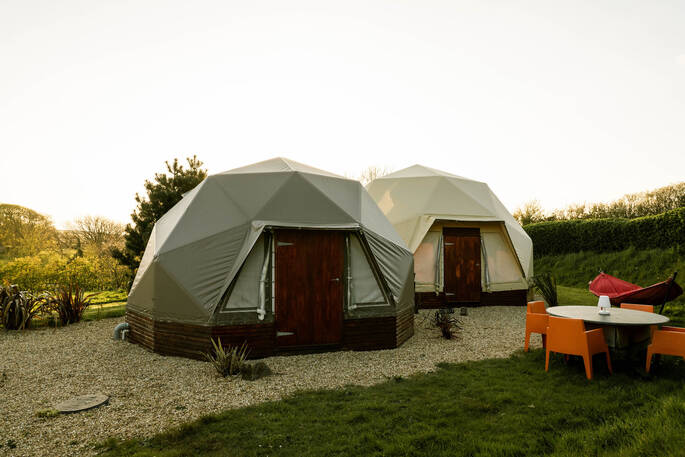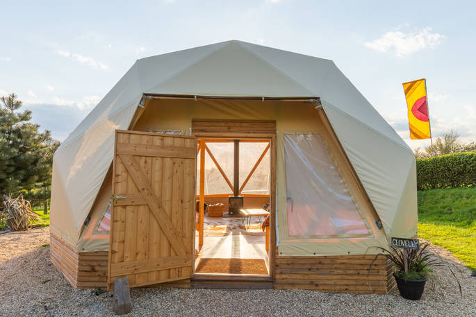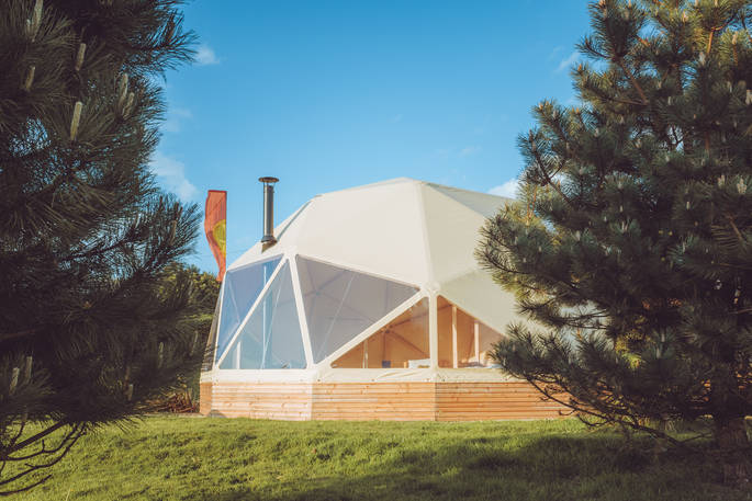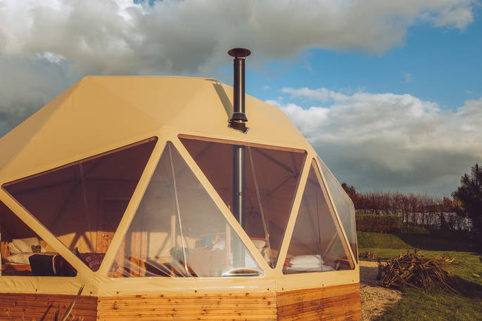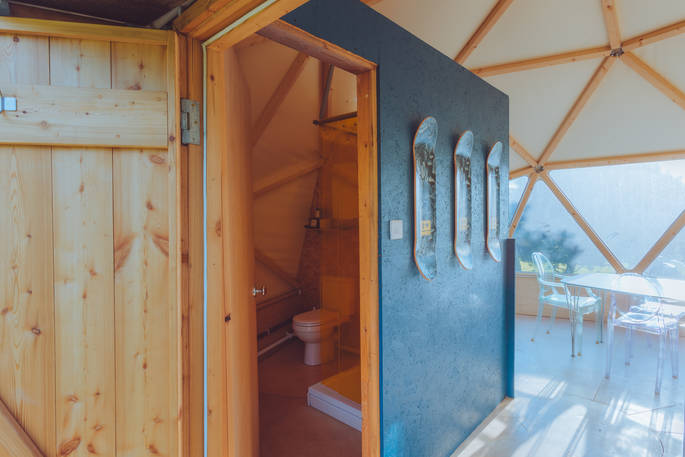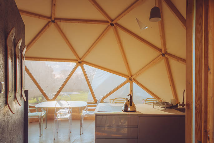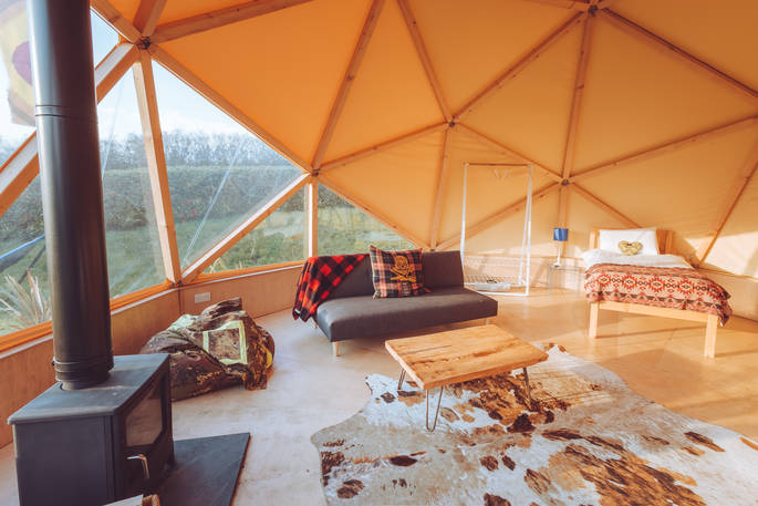 Clovelly is the latest creation of the innovative folk at Loveland, with the two-pod setup joining their family of stylish geodomes in the Devon hills. One pod is your bedroom with a double and two singles, and one your lounge and kitchen, with a rustic style running through both to ease you into country life.
