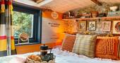 The Book Nook is set into 45 acres of Lurcombe Farm, where you can explore the woodlands, ponds, orchards and the flower farm – there’s even tennis courts and an artist’s studio! If you spot the owners out and about on site, they’ll be happy to show you around. You’re also a half hour’s drive from the beach for sunny strolls, or just a ten-minute drive to Haytor on Dartmoor for mooches across the moors.