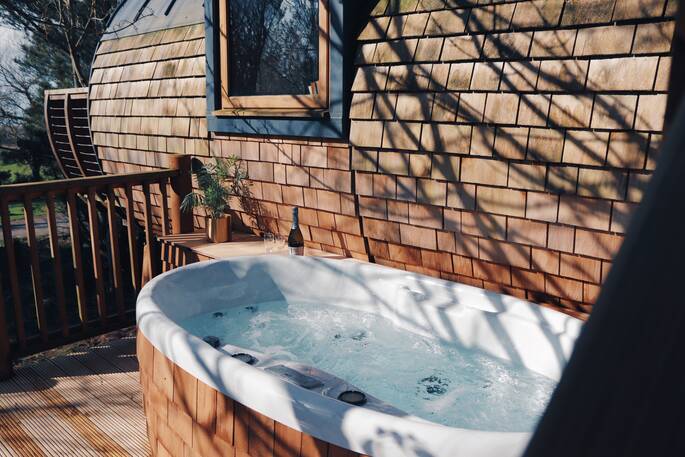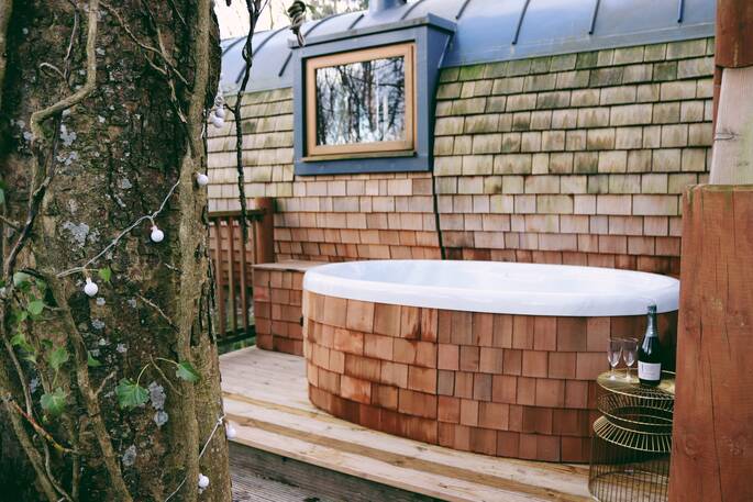 Arrive and relax in bliss. From cute touches to the beautifully crafted treehouse and perfect hot tub, a perfect spot to hunker down to avoid Storm Bert