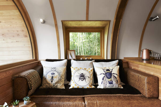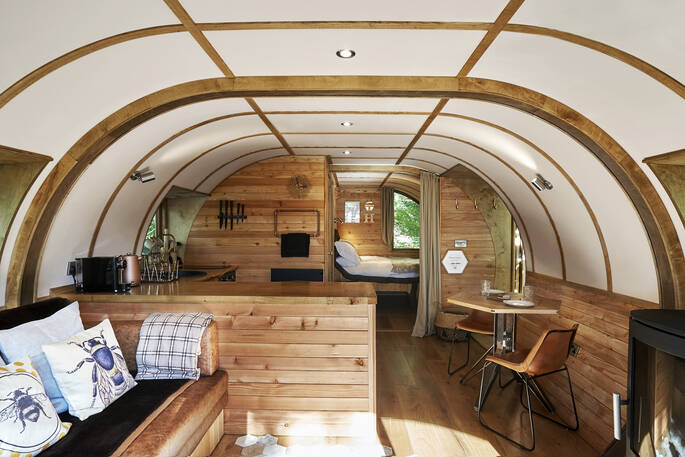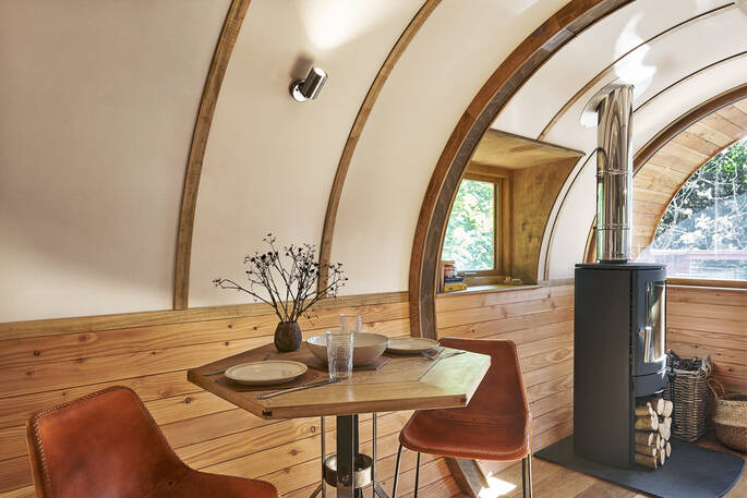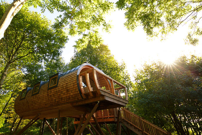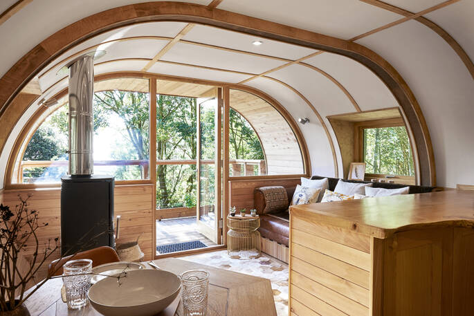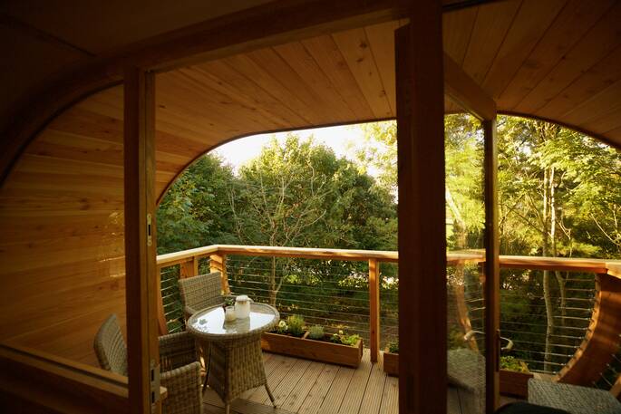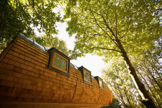 The treehouses are built with a combination of traditional craftsmanship and cutting-edge technology, for a mix of down-to-earth simplicity with enough extravagances to make you feel pampered. In keeping with their ethos, the treehouses are completely sustainable too. The electricity for the treehouses come from 100% renewable resources - 50% from their own solar panels, 50% from a green energy company, and the water is from Pickwell's own natural spring. Green cleaning products like Who Gives A Crap (toilet rolls), and LED light bulbs are used throughout the treehouses. All wood comes from Pickwell's own sustainable woodland, outdoor benches and chairs are made from FSC wood and toiletries are all made in Britain to reduce air miles.