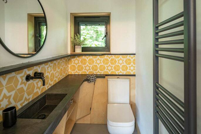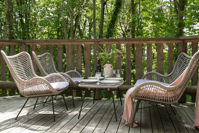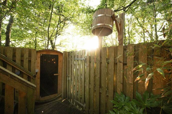The treehouses are built with a combination of traditional craftsmanship and cutting-edge technology, for a mix of down-to-earth simplicity with enough extravagances to make you feel pampered. In keeping with their ethos, the treehouses are completely sustainable too. The electricity for the treehouses come from 100% renewable resources - 50% from their own solar panels, 50% from a green energy company, and the water is from Pickwell's own natural spring. Green cleaning products like Who Gives A Crap (toilet rolls), and LED light bulbs are used throughout the treehouses. All wood comes from Pickwell's own sustainable woodland, outdoor benches and chairs are made from FSC wood and toiletries are all made in Britain to reduce air miles.