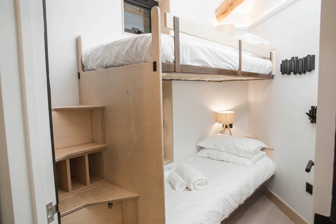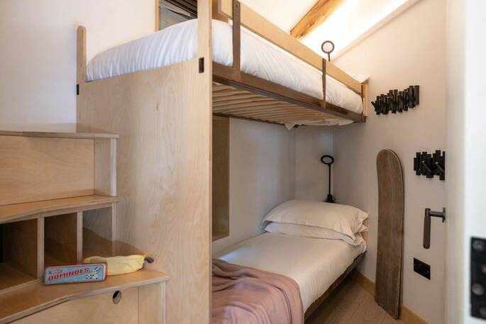 - One king-size bed and two full size bunk beds