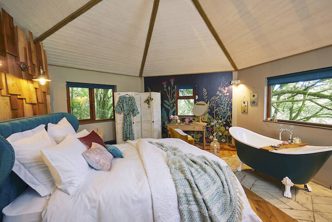 Resting against the hillside in a patch of wooded valley that runs all the way to the sea, you’ll find The Treehouse. What you want from a space when you go away for a few days, is an experience unlike your daily life – and The Treehouse delivers. Get distracted by the little things, the morning sun firing shafts of light through the canopy, the birdsong, the steam spiralling off your morning coffee, the crackle of the wood burner. The perfect combination of relaxation and indulgence is the two-person wood fired hot tub and barrel sauna. The outdoor cold bucket shower will also add to the complete spa experience. With a clawfoot bath at the foot of your bed, you’ll be staying up to a ridiculous hour, practising the art of conversation before melting into velvety sleep.