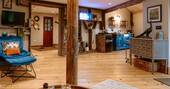 - Kitchen equipped with oven above wood burning stove, electric induction hobs, kettle, toaster, Nespresso coffee machine, fridge-freezer