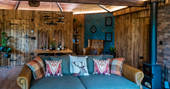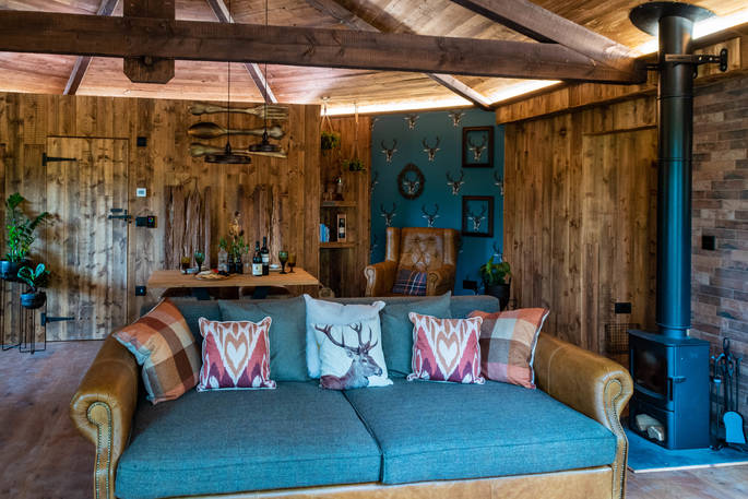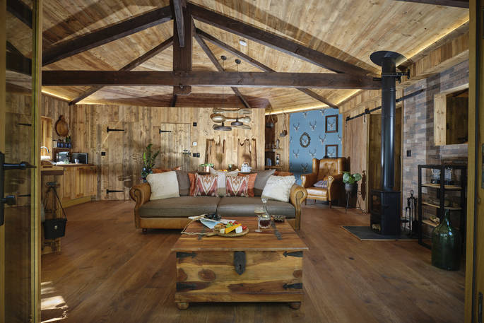 Your dream bedroom features super king size bed and your copper bath. There is a second bedroom with bunk beds, colourful lighting, and games if you decide to bring the kids. Your four-legged friends will be spoilt too, with a bed, treats and a warm outdoor shower and plenty of space to run around.