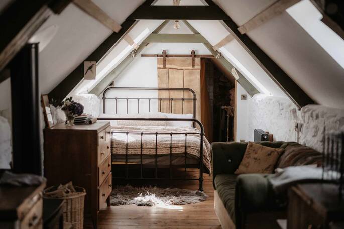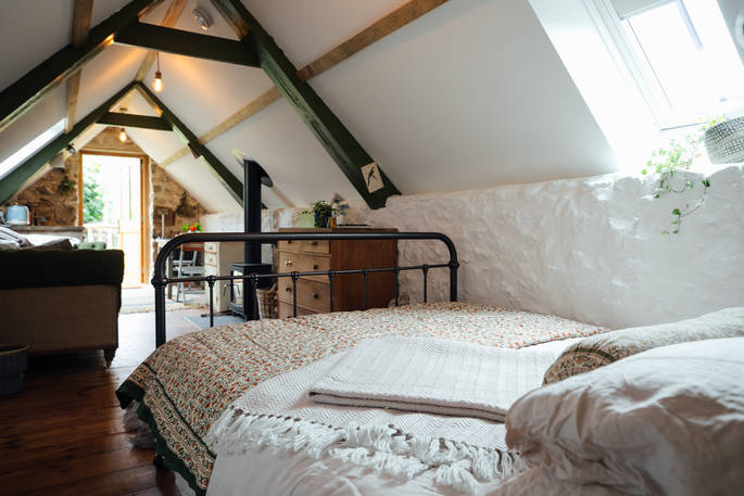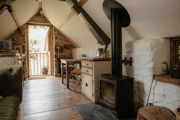 The Piggery lets you live as wild as you want. There's everything you need inside, but the firepit or the pond jetty make wonderful places for picnics and late-night stargazing under the skies of a Dark Sky Reserve. There's also the notable feature of an outdoor four poster bed, crafted from a fallen tree, where floating in a sea of wildflowers you can take an incredible afternoon nap. There are also wood-fired outdoor baths, a range of wellness treatments, meals that can be ordered onsite and creative activities you can arrange as part of your stay.