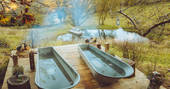 - Wood-fired double outdoor bath tubs (£50 per session)