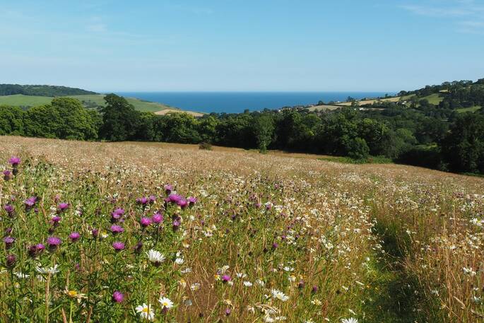 You’re surrounded by a nature reserve, within a farm, within a National Landscape. Take a walk and you’ll find yourself amongst wildflower meadows (at their peak late May to July), bluebell woods or at the top of the site – with views out to Char Valley and the sea.