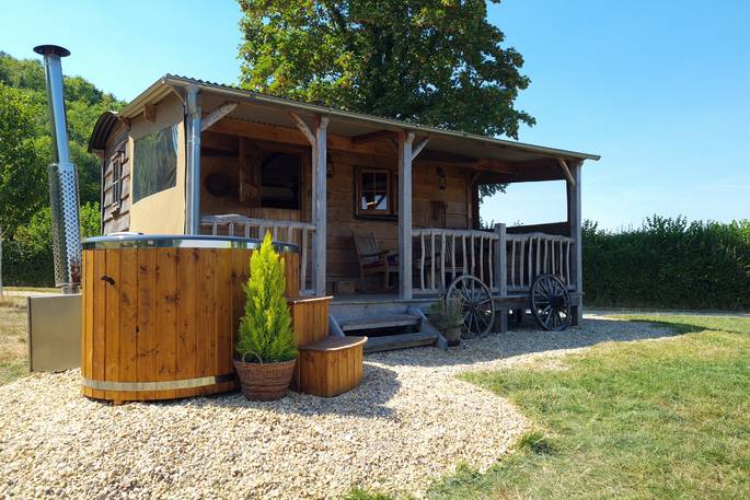 Don your best gingham and wash up in your private bathroom before gathering around your own fire pit for fun and tasty outdoor dining. You can buy impressive BBQ packs from the general store in a shepherd's hut on site – the meat is produced by the local award-winning butcher, and the charcoal is produced by Jim in the woods behind. Junior hustlers can help feed the sheep or join in with organic egg collecting from the happy free-range hens!