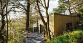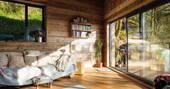 Tucked away amongst the trees in the Dorset countryside, with the sea a mere mile or so away, Nightjars is built into the hillside, with the coast in the distance. This part of the countryside is all rolling hillside, and patchwork field, before giving away to sandy coast. From the deck, and the garden below, your morning coffee will be paired with the smell of pine tree, and fresh sea air.