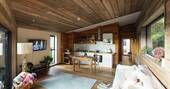 - Open plan kitchen equipped with a four ring induction hob, oven, microwave, toaster and kettle