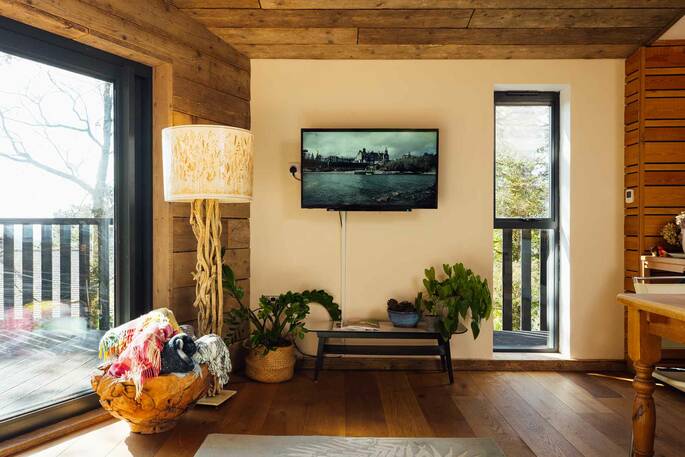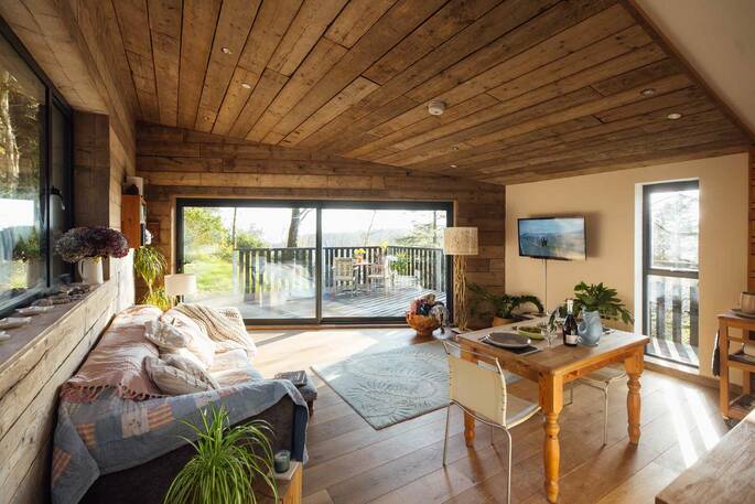 Without a doubt, Nightjars is definitely one of the best Canopy & Stars places we've stayed at. The cabin was much more spacious than we expected from the photos, and the hosts have put so much thought into the details. The large windows in the living area offered great views of the surrounding woodland, making it feel very peaceful and tucked away. We travelled by train from London and pre-arranged a taxi to the cabin. There’s plenty to do in the area – we walked to Golden Cap and had a great lunch at the Anchor Inn in Seatown, and on another day took the bus to Lyme Regis, which was really easy! The cabin had everything we needed for a comfortable stay, and the sauna was a real highlight – perfect to come back to after a long walk. We especially enjoyed relaxing in the living room and watching the light change through the trees outside.