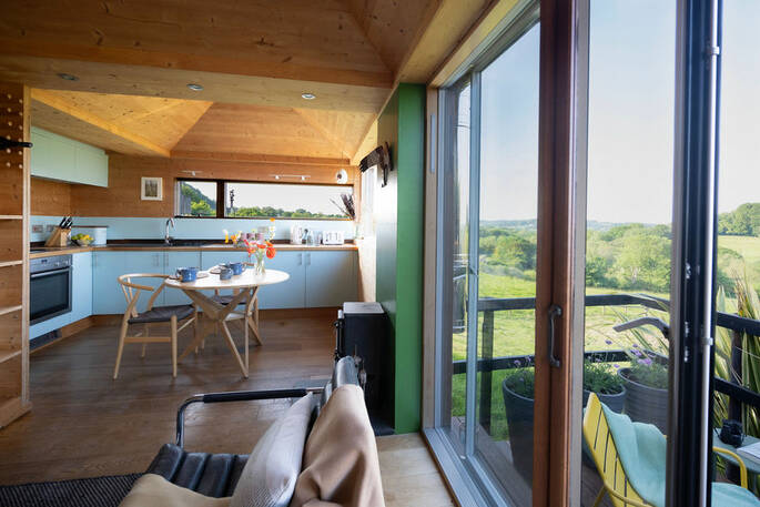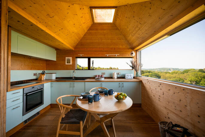 The lodge is an Echo Living original, (as featured in Channel 4’s Impossible Builds) and rather than being just a design challenge, it was actually owners Andy and Jane’s house for five years, and the love and care that goes into a real home are evident throughout.