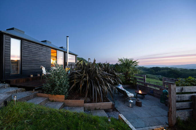 Hidden within an AONB, SSSI, and International Dark Sky Reserve – Red Kite is a beautiful, relaxing space, designed to sit in perfect harmony with the gentle countryside around it. Cows and sheep peer at you over the fence as you drink morning coffee on the patio and watch the sun lift the mist out of the valley to reveal endless rolling hills.