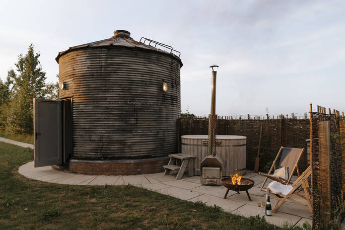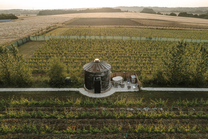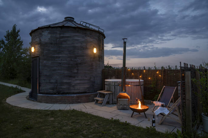 Had a fantastic weekend in the grain silo - wanted a weekend away from emails , phones ringing and the never ending to do list that threatens a weekend off when you work long hours in the week and this was perfect . Hot tub , fire pit , lovey hot shower & comfy bed - this puts the glam in glamping . glass of wine , good book , local walk , dip in the hot tub and cooking dinner over the fire pit was an ideal way to relax . The wines produced are available to buy with guest discount and I can highly recommend each and every one . We wanted to relax with peace & quiet and we did just that .