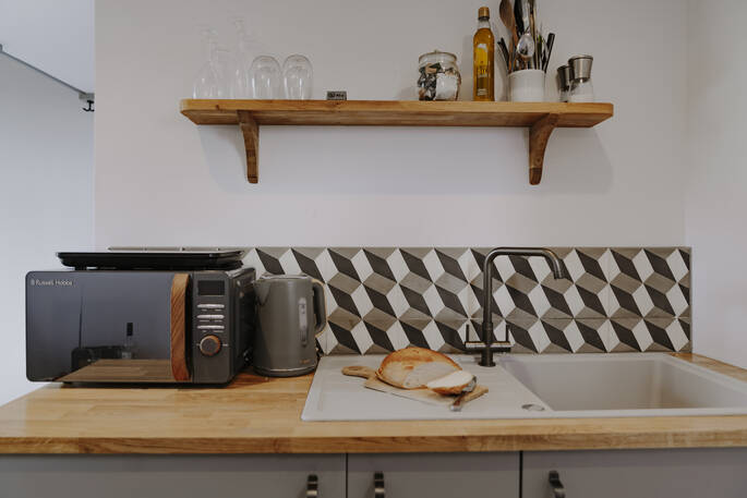Cooking essentials such as tea, coffee, milk and sugar are provided