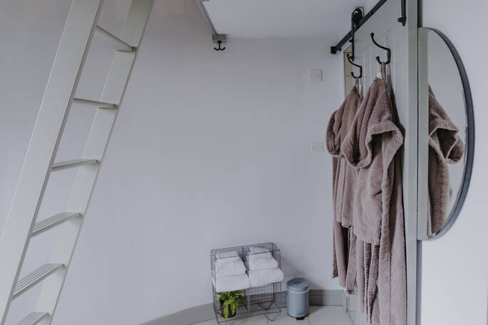 The Grain Silo is the latest delicious offering to be crafted on the small family-run vineyard at Tuffon Hall. Its circular, corrugated exterior, speckled with red rust tones, overlooks fields of endlessly sprawling grape vines, with the neighbouring shepherd’s hut 50 metres away. Stepping into the Silo, you’ll be amazed by the contrast of the inside and outside. A swish, split-level living space awaits you, with a cosy double bed on the upper level, accessible by ladder, while the perfect little kitchen, bathroom with rainforest shower and living area snuggles below.