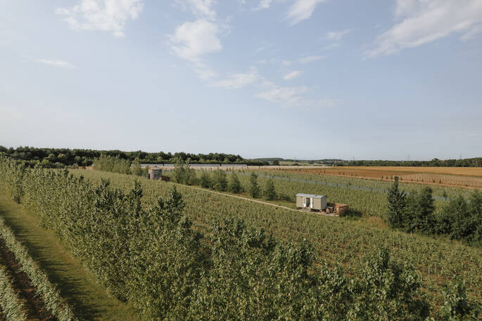 Arrive at Tuffon Hall Vineyard, drive to the far end of the main farm yard carpark. You will see a sign with the name of your accommodation. Park here and locate the key safe on the fence. Walk down the pathway to your space.