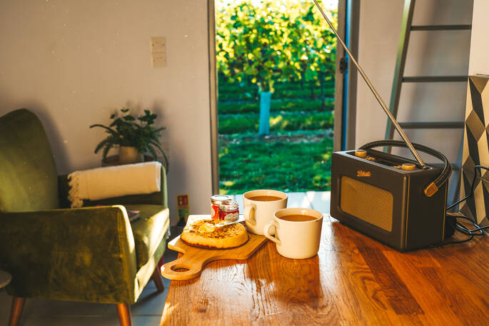 Start your morning with a coffee whilst relaxing in one of the jolly, green velvet chairs and planning your day ahead. There’s a lovely walk around the vineyard right from the door where you can see the vines that produce the wine available for hosting your own wine tasting if it takes your fancy. A little further afield is Gosfield lake, where you can wild swim or try your hand at water skiing, with a handful of great local pubs to refuel at on the way home.