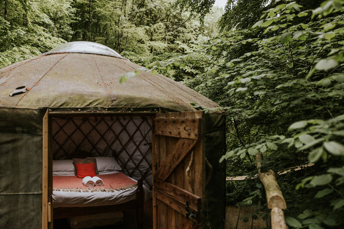 You can adventure or relax as you wish. There are courses and classes on offer, from yoga, qi gong, archery and woodworking to foraging and campfire cookery. Meals, cooked on the open fires of the kitchen, are a sociable affair but you can find private spaces among the trees if you’d rather be alone. Bath is nearby, if you fancy stepping back into modern life, with sandstone buildings, historic sites and shops that make for a relaxing day trip.