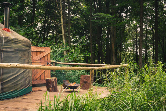 - Campwell Woods is an off-grid site with a communal area called The Village