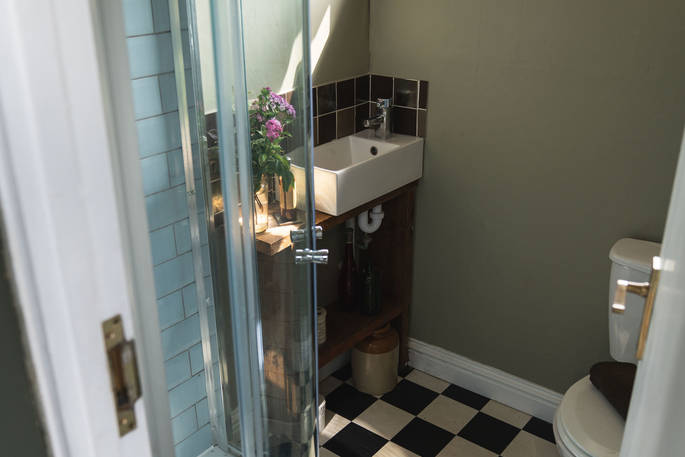 - Private hot shower and flushing loo in lockable 'beach hut' in the hay barn 90 m away (one key given per yurt). The bathroom is up a flight of stairs. If there is difficulty with stairs please contact Nicola directly.