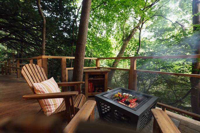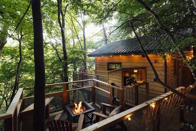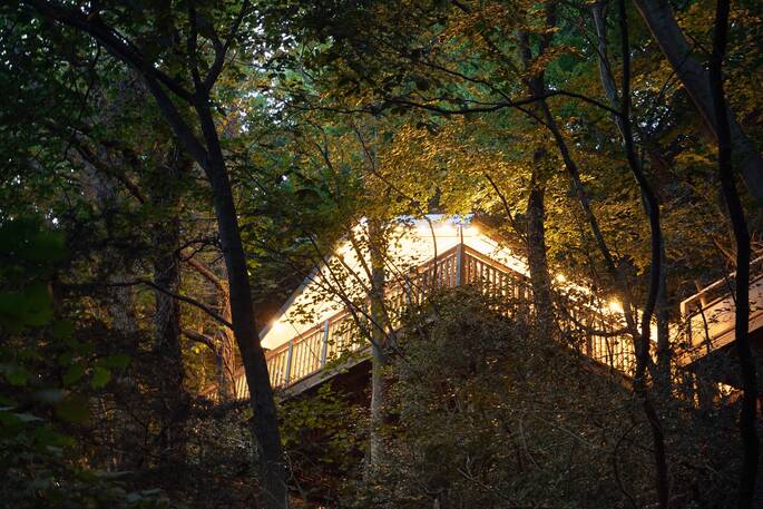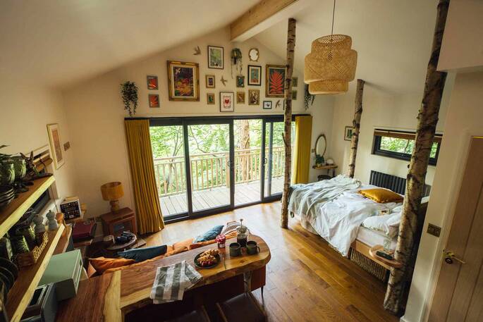 What a beautiful place to stay. The craftsmanship on both within and without the treehouse is stunning. We went in autumn and the colours from the canopy of trees in front of the treehouse was stunning. Everything we needed was provided and it was a really luxurious stay in such a unique property. There were walks from the door and a number of pubs walking distance. I’ve already recommended it to several friends and family members. Communication before, during and on checkout was superb and made everything very easy.