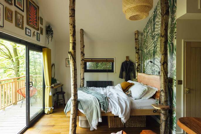 The treehouse was hand-built by the owners themselves, with the forest’s natural balance in mind. Most of the materials were sourced locally and with the silver birch branches making the four-poster bed, it’s almost as if the forest grew the place itself. You may hear the treehouse next door but are unlikely to be able to spot it through the trees.