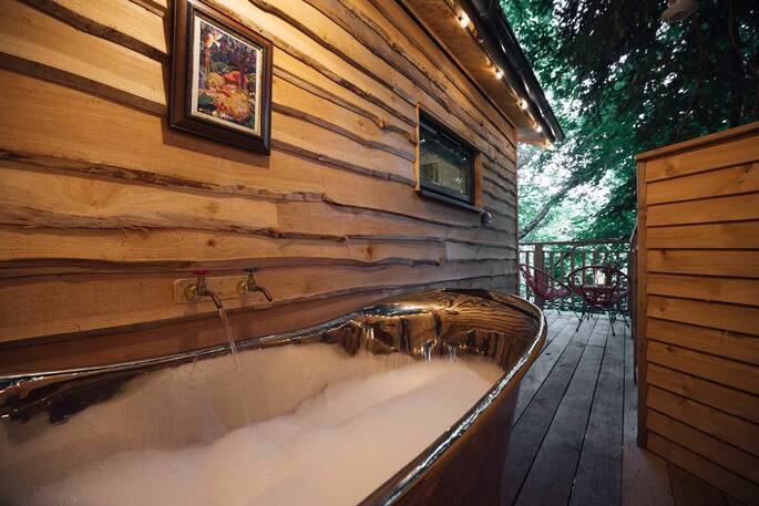 - Please bring a torch, walking boots and flip flops to wear on your way to the outdoor bath tub