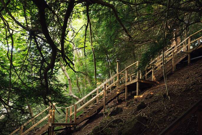 - The car park is approx. 20m away via 5 flights of stairs. An electric winch is available to transport luggage up to the treehouse