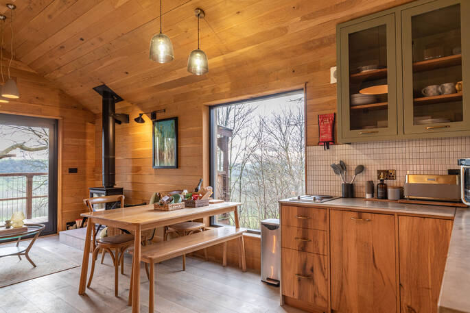 We stayed in the Damselfly Treehouse for our minimoon. It was the perfect getaway and felt really secluded despite being within walking distance of some really nice places to eat, drink and explore. The perfect balance between being rustic and luxury the treehouse was cleverly thought out and had everything you could possibly need for a relaxing few days away. The hamper was a lovely additional touch and it was brilliant waking up amongst the trees with a great view.