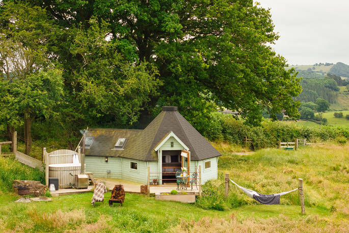 Forest bathing - A short walk from the cabins guests can enjoy exclusive access to the owners ancient woodland which rises above the River Monnow, where they can try the Japanese practice of 'forest bathing' (known as shinrin yoku) to relax and de-stress. Practice mindfulness amongst the trees, breathing deeply and observing the nature around you, whilst making use of the giant sail hammock suspended beneath the canopy.