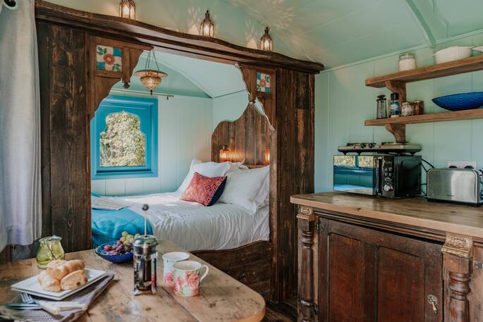 The property has been in the family for 40 years and now they want to finally share their beautiful land with you. They opened up the garden area of the property twice so far this year and numerous amounts of visitors have felt that it is an extremely special location. Cheskie and her mother both have a passion for designing and decorating and they set up a home accessories business called Cheskie, which offers products such as cushions, table cloths and scarfs. This inspired their Moroccan chic theme inside the shepherd's hut and you may even notice a few of their products inside!