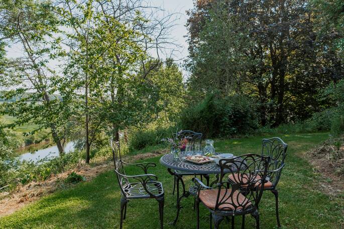 Good place to relax. Good views of the river. Nice garden with trees. Useful gor shade.