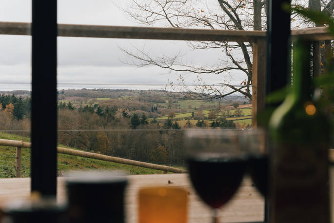 This space is flooded with light through the long glass wall and faces out to open countryside, with a view for miles on a clear day. Watch the sunset from the three-seater sofa living room or the sunrise from the huge bed. The modern bathroom is ensuite and the kitchen has everything you need to whip up something special and dine out on the broad balcony in the fresh air. After dinner, head down to the seats by the chiminea or soak into the hot tub, to end the night with the fire crackling and maybe a toasted marshmallow or two.