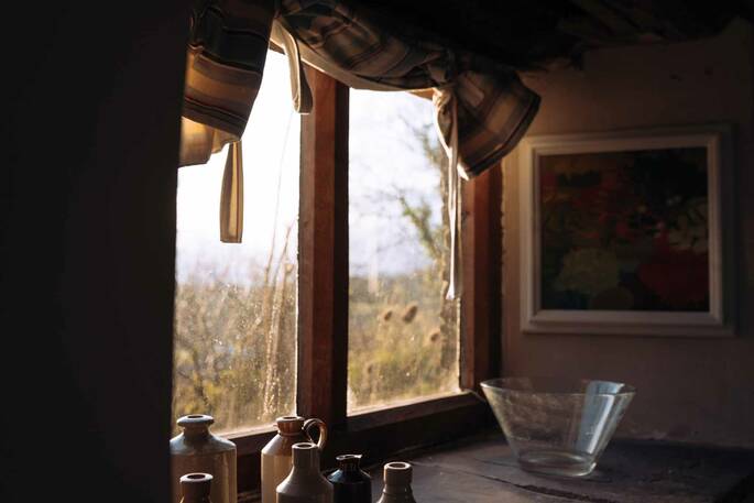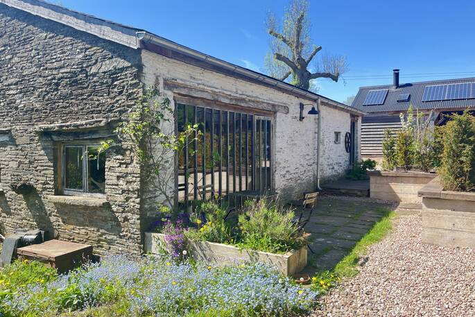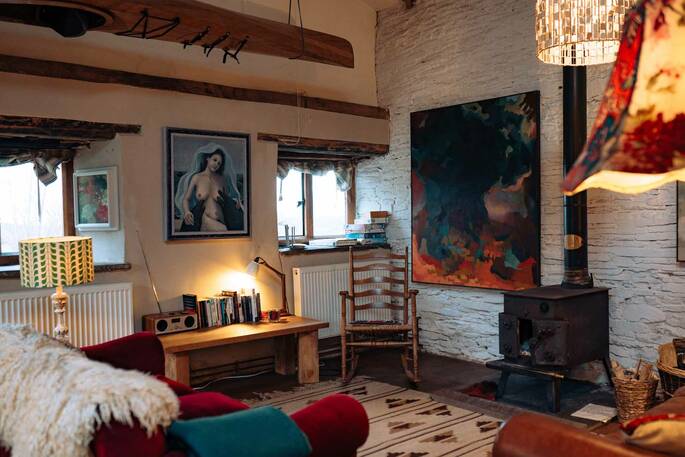 Georgie and Jim have been here for over a decade. They are both painters whose work is inspired and rooted in the place where they live. Georgie has a pretty and abundant flower garden which provides her main focus and Jim has the landscape, which he frequently trudges off into absorbing a few of its many possibilities. The byre was their studio when they first arrived, but they soon created a purpose-built space in the garden and decided to open it as a let in 2013. Soon after, in the time of Covid Jim created the sauna. He has always loved a good steam and as a young lad living literally in a barn and drinking out of a sheep trough, he used a mobile sweat lodge to wash, which he delighted in taking to various pools for a dip after. The sauna is his sort of grown up version!