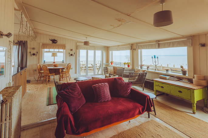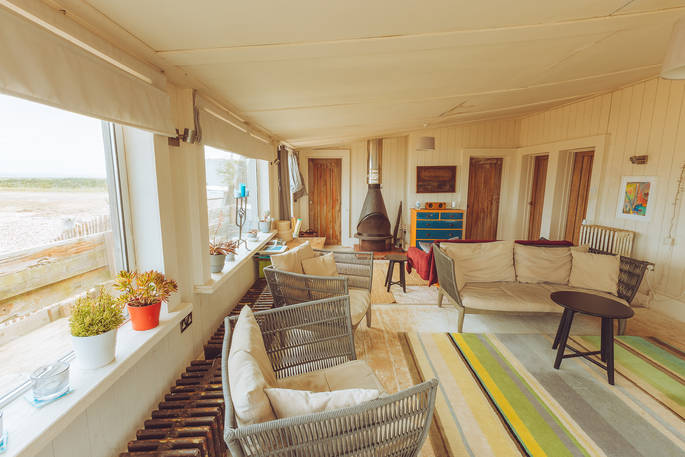 This lovely, cosy hideaway looks out at a huge sweep of North Kent coast from the height of its stilts on the Isle of Sheppey. The beach is a popular place for fisherman, paddle boarders and, about 150m down the sand to the right, nudists. You’re free to join in with any of those pursuits, but in all cases you’ll need to produce your own equipment. It’s in an area of natural beauty and importance, with the shell beach just off the deck a SSSI and the land around a bird sanctuary and nature reserve made up of protected wetlands and the rippling Kent coastline. It’s a place for idling and wandering as you let the sea breeze clear your head, or exploring the local area on strolls into Leysdown for fish and chips and a go in the penny arcades.