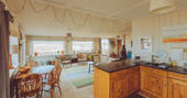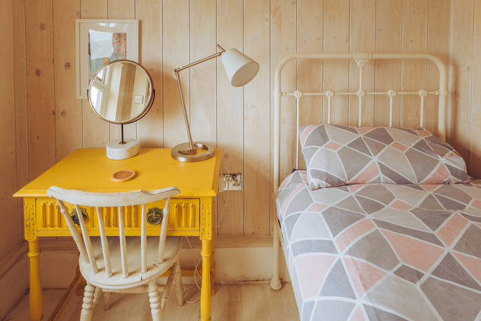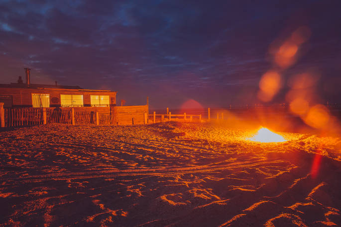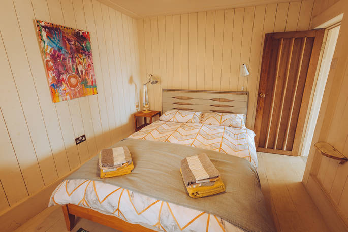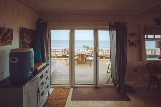 Sandy Toes Beach House is off-grid, but has everything you need if you’d rather stay in for a night of books and board games. The kitchen is fully-equipped, there’s a hot shower and you don’t even miss out on the views, as the massive windows mean you never lose sight of the changing light on the water. The Beach House has central heating, so come winter or summer you will be toasty and warm. There are two double bedrooms and one single and a raised deck on two sides with owner Frances & John’s house adjoined on the right, so you’ll see her to wave to now and again. The house runs on solar energy through solar batteries, which power the electric pump which pumps water to the taps, shower and central heating system. You’re recommended to be careful with the energy you use and also to bring your own drinking water. To park, you’ll need to navigate a steepish ramp before you reach the large wooden gate at the end of the road and come along the sea wall, so it’s best to stock up for a few days in advance to save trips. Once you’re in, you can ditch the car and settle into your new barefoot, beach bum lifestyle, padding between bed, the sofa and the deck as you laze through the days.