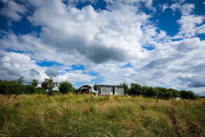 Grange Farm has been owned by the Pell family for 400 years. The family have been farming in the area for generations and have been planting trees and improving the biodiversity of the estate ever since. They've planted 15 acres of wild flower margins for butterflies and pollinators and over 20 acres of wild bird seed to support birds year-round. The drive to the huts takes you through one of their wild bird seed areas.