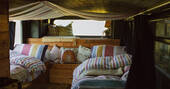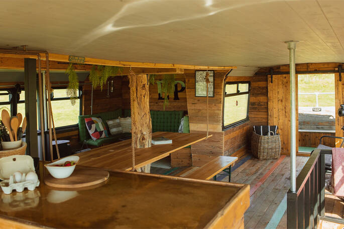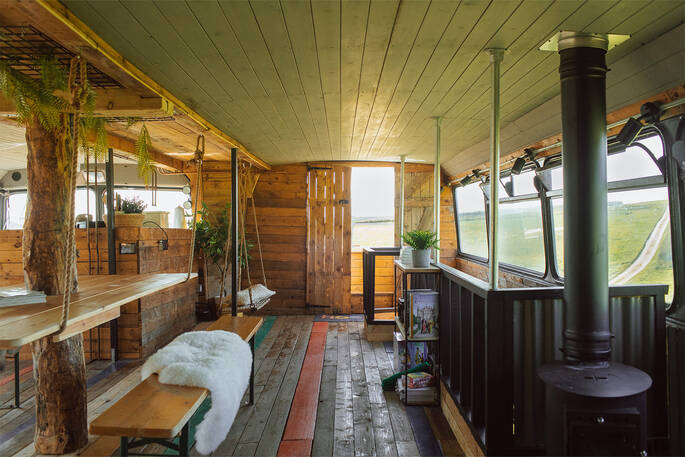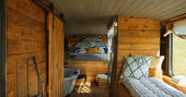 For once, here’s a bus that’s always in the right place, at the right time. Sitting within its own 100 acres or so of a working family farm, Double Deckerdence is the very best of the wild and the wonderful when it comes to glamping. On the top deck, the two buses combine, to create an amazing open-plan living area, with a kitchen, incredible dining area and two seating areas – one with a wood burner. On the second floor, you’ll also find an outdoor seating area for stargazing and a hot tub – both with phenomenal views.