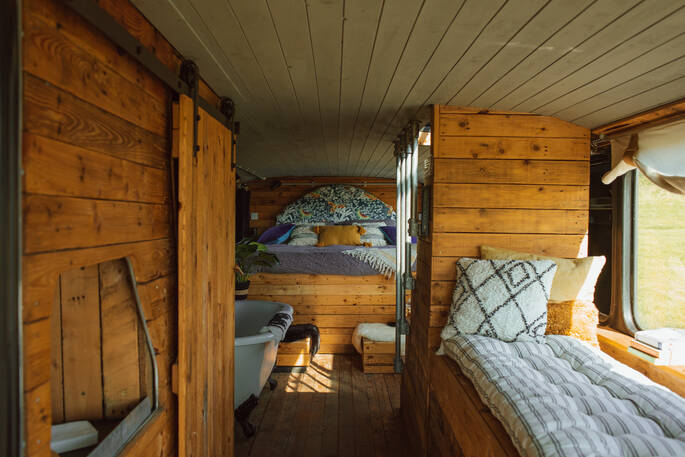 This was the most beautiful place to get into our family bubble. We went as a family of five (ages 2,9,11,44 & 45!) and there was something for all of us. All the communication beforehand was great for knowing what to expect & ideas on what to take - which wasn't much as everything is thought of. On arrival Matt met us and showed us to the buses. We were wowed from the start. The surroundings are beautiful - space to play, walk, watch the wildlife. The outside space of the buses is fantastic. Firepit in the middle with plenty of seating around. We cooked on this one night, & used it for our smores too. The outdoor kitchen was a great space for prepping for & washing up. We used the pizza oven one night which was good fun. The toilet & shower feels so luxurious in the middle of a field, even complete with a toddler friendly step/seat, & I can highly recommend the outdoor shower too. Once in the buses the attention to detail is something else. We had great fun playing buses sat in the drivers seats, had blissful bubble baths, climbed up the wall, soaked in the hot tub, played games, watched films. It was a beautiful family reset and we'd recommend it to anyone, thank you.