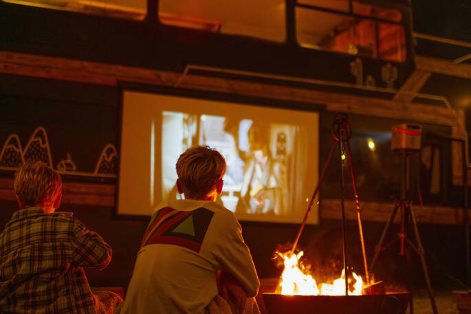 - There is no TV but a projector outside with cables that connects to mobile devices